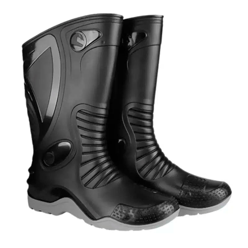 La bota de PVC oficial para motociclismo. Botas de pvc con media interna de poliéster anti hongo, anti olor de la más alta calidad, inyección bi-color, suela antideslizante, refuerzos externos para protección personal así como diseño antideslizante en palanca de cambios, talón, puntas y suela.. Diseñada para los motoristas fascinados por la adrenalina, que pasan la mayor parte de su día en su motocicleta.
