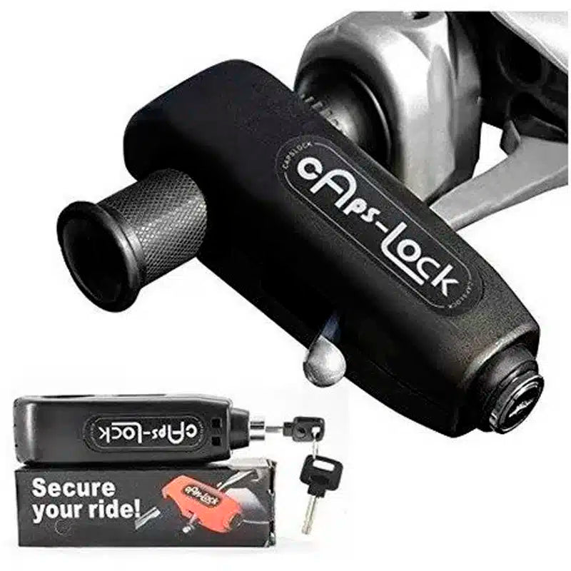 Proporciona una excelente seguridad, gracias a su doble agarre, en acelerador y manilla de freno. El candado se ajusta perfecto a los puños, lo cual hace que no se generen movimientos. Diseñado de manera compacta, ligera y resistente. Cada Caps-Lock viene con 2 llaves y 3 laminas de goma para un mayor ajuste. Fácil de usar, compatible con la gran mayoría de motocicletas y vehículos todo terrero. Características: