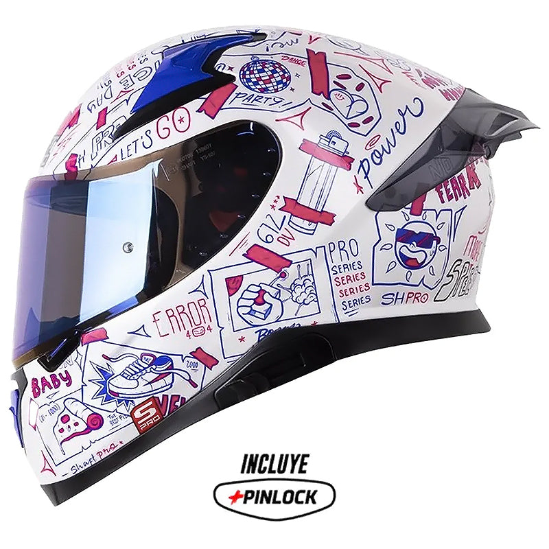 Casco Shaft Pro 612Dv Things Blanco Fucsia Visor Iridium Azul