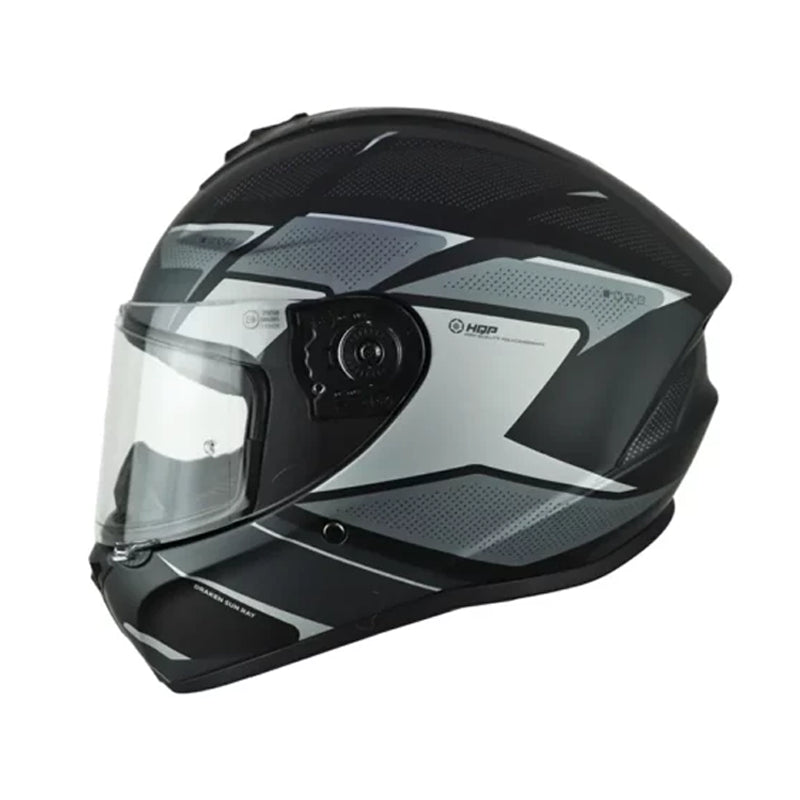 Casco Spartan Draken S Sun Ray Negro Gris Nota: El color puede ser ligeramente diferente debido a la calibración del color de cada monitor individual. Este casco integral increíblemente agresivo viene con líneas aerodinámicas frontales que se deslizan a lo largo del casco hasta su alerón integrado, haciendo del Draken un casco de características excepcionales a un precio increíble. Este casco cuenta con la certificación europea ECE 22.06 que es una de las certificaciones más exigentes del mundo. La calota está fabricada con policarbonato moldeado de alto impacto y contiene ventilaciones en la parte frontal, superior y trasera para extraer el aire caliente generado por el cuerpo humano. Características: