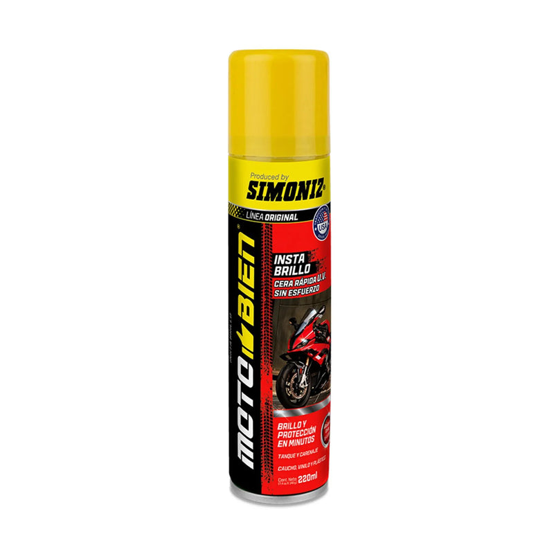 Cera Instabrillo Simoniz 220ml Es una innovadora fórmula desarrollada para obtener el máximo brillo en el menor tiempo. Su novedosa presentación en aerosol permite una distribución uniforme y un cubrimiento instantáneo, obteniendo un lustre profundo y una protección duradera en minutos y con un menor esfuerzo que usando ceras tradicionales en crema o pasta.