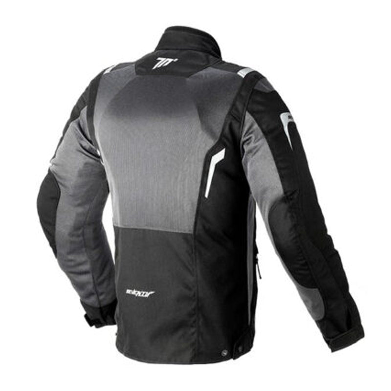 Chaqueta Seventy Sd-Jt44 Verano Touring Negro Gris Chaqueta Touring confeccionada en poliéster y tejido transpirable Mesh – 100% ventilada – Bolsillos delanteros semiocultos para aportar un mayor look deportivo – Regulaciones en brazos y cintura para un ajuste perfecto – Cortavientos interior extraíble 100%impermeable – Cierre de botón ajustable en el cuello – Incluye protecciones CE en codos y hombros, además de un bolsillo para espaldera para mayor seguridad y protección. Características: