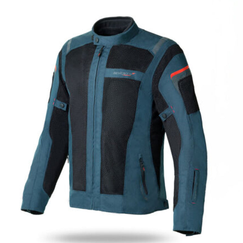 Chaqueta Seventy Sd-Jt56 Verano Touring Azul Marino Negro Chaqueta touring de verano para hombre. Con membrana impermeable y cortaviento extraíble (resistencia columna de agua +15000 mm H2O). Confeccionada en poliéster 600D y con alta presencia de tejido perforado. Chaqueta muy transpirable, ligera y cómoda. Cuenta con bolsillos interiores y exteriores más un bolsillo en la manga para tarjetas/telepeaje. Cremalleras de calidad YKK. Cuello confort de neopreno. Botón regulable en el cuello. Reflectante en múltiples zonas. Protecciones extraíbles en hombros y codos homologadas (EN1621-1:2012). Bolsillo preparado para espaldera de protección de PU microcelular de nivel 2 (EN1621-2:2014) de Seventy Degrees.
