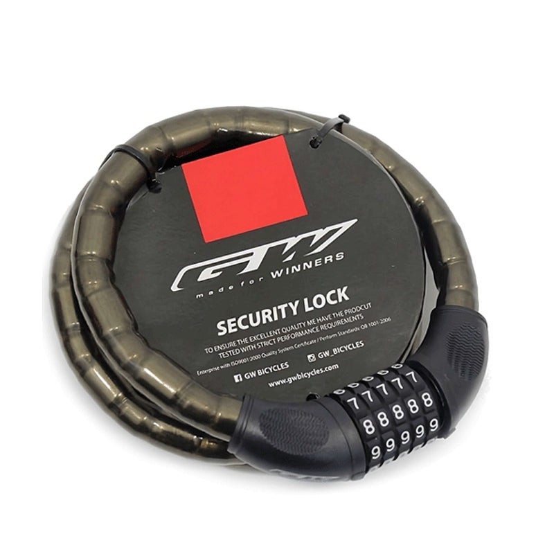Guaya Candado En Articulado Clave Gw Candado de seguridad GW con clave de 5 dígitos color Negro 18mm ancho x 1.5 metros de largo - Guaya trenzada cubierta con anillos de acero nivel industrial alta seguridad recubierta de caucho para evitar maltratos y rayones, resistente al agua. ESPECIFICACIONES: Marca: GW Color: Negro. Medidas: 18mm ancho x 1.5 metros de largo. Peso 860g. Tipo de empaque: Blister Original GW.