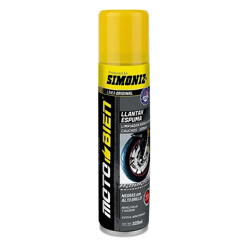Es una fórmula desarrollada para renovar, proteger y dar brillo a las llantas, gomas, neumáticos y cauchos de su moto. Simplemente aplique la espuma permitiendo que actúe sola y sin necesidad de frotar, dejando las superficies limpias, brillantes y como nuevas.