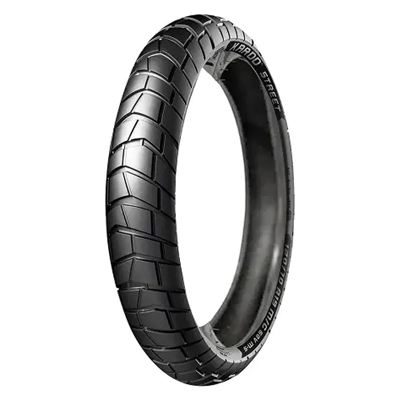 El neumático de off-road con prestaciones de carretera Los perfiles del KAROO™ Street derivan directamente de los TOURANCE™ NEXT, con la finalidad específica de incrementar el comportamiento en carretera. Incorpora un perfil multi radio con una anchura incrementada y una longitud del contorno que incrementa la huella de pisada para ofrecer un mayor agarre y estabilidad también en curva. La altura de la huella ha sido sensiblemente incrementada para mejorar la capacidad de absorción de los baches y el confort. El perfil del neumático delantero y trasero sigue el mismo esquema y una geometría similar, asegurando un comportamiento sincronizado del juego.