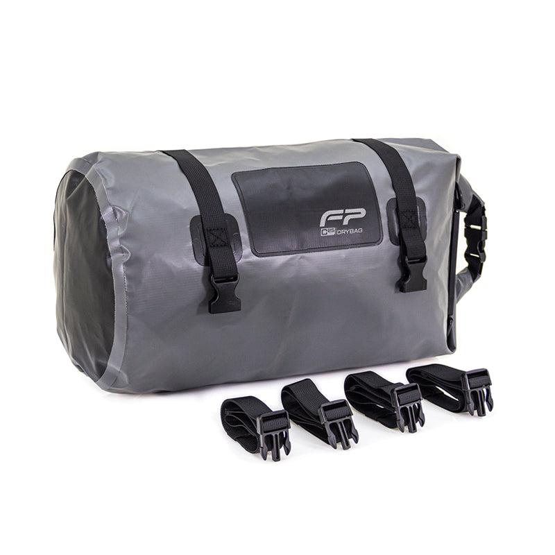 Maleta Impermeable Fp Drybag C25 Negro Gris La Dry Bag Tubular de 25 litros Fireparts brinda mucha seguridad ya que tiene varios puntos de amarre lo que significa que no importa por el terreno que pases, la Dry Bag tubular de 25 litros Fireparts no se va a caer. Algo muy bueno de esta dry bag es que por su forma la puedes amarrar a los herrajes de alforjas para maletas blandas lo que la hace muy versátil pues esto puede ampliar tu capacidad de carga. Características: