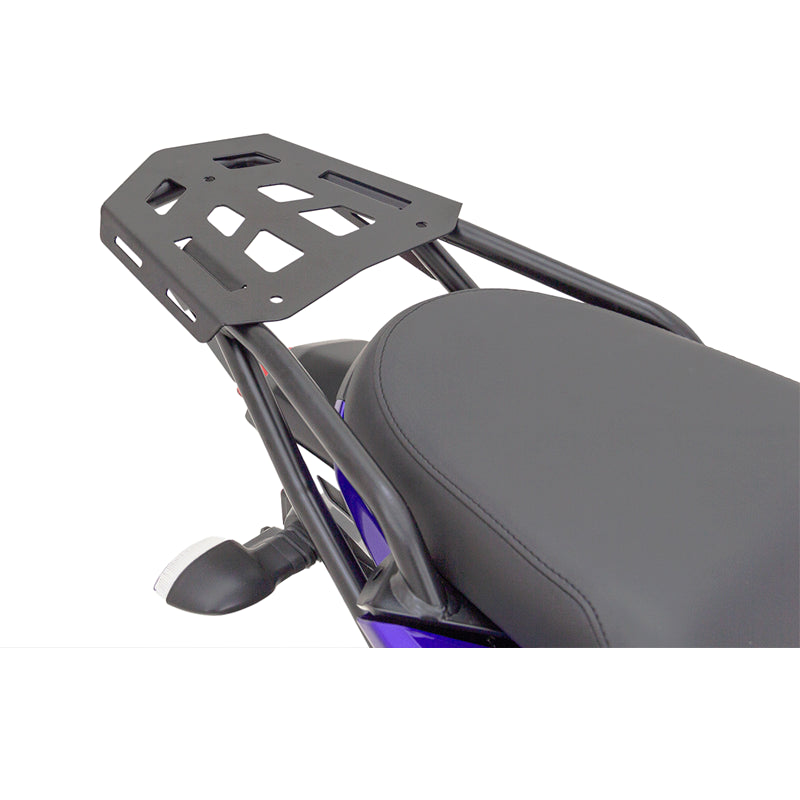 Esta parrilla para moto está perfectamente diseñada para instalar un baúl rígido o amarrar un maletín impermeable tipo DryBag. Recuerda que es una parrilla universal, puedes instalar cualquier marca de maleta superior. La parrilla para tu Yamaha FZ3.0 está fabricada en acero de alta calidad y se ancla en distintas partes del sub chasis para dar mayor estabilidad. Todos los accesorios de FP son fáciles de instalar, no necesitas ir al mecánico ni gastar un peso extra para incorporarlos en tu moto. El herraje para maletero superior incluye toda la tornillería para ser instalado y también su respectivo manual de instalación para que puedas instalarla en casa con herramientas básicas. Esta base para alforja superior está recubierta con pintura electrostática negro liso mate, lo que le da un acabado muy premium y que no se oxida con facilidad.